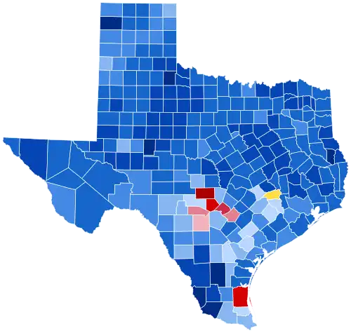 | Tarrant | 36,791 | 72.05% | 4,113 | 8.05% | 10,161 | 19.90% | 0 | 0.00% | 26,630[b] | 52.15% | 51,065 |