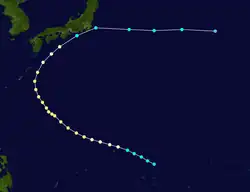 Libby formed southeast of Japan on September 29. The storm moved west as it quickly strengthened into a Category 4 typhoon. It later weakened and turned northeast.