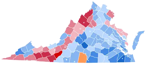As of the 2024 presidential election, this is the last election in which the Fifth Congressional District has supported a Democratic presidential candidate. It is also the last election when Hanover County, King William County, Lancaster County, Middlesex County and Orange County have supported a Democratic presidential nominee.[25] Chesterfield County and Lynchburg City would not vote Democratic again at a presidential level until 2020, Henrico County not until 2008, Albemarle County and Danville City not until 2004, Prince Edward County not until 1996 and Amelia County not until 1976.[25]