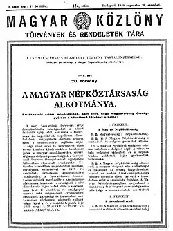 ^ The document was initially titled Constitution of the Hungarian People's Republic (Hungarian: A Magyar Népköztársaság Alkotmánya).