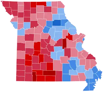 | Audrain | 4,767 | 41.26% | 6,775 | 58.64% | 12 | 0.10% | -2,008 | -17.38% | 11,554 |