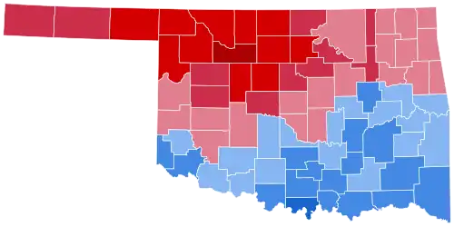| Oklahoma | 95,492 | 57.63% | 70,199 | 42.37% | 25,293 | 15.26% | 165,691 |