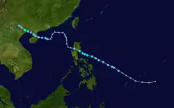 04W formed on June 21. The storm moved northwest, making landfall in the Philippines on June 25, reaching its peak intensity. On June 26, the storm quickly curved north and then quickly moved south the same day. A few days later, the storm made landfall in Hainan and later Mainland China.[5]