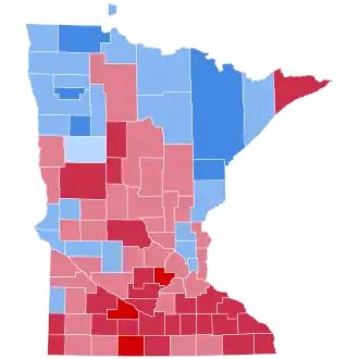 | Blue Earth | 11,398 | 67.50% | 5,467 | 32.38% | 14 | 0.08% | 7 | 0.04% | 5,931 | 35.12% | 16,886 |