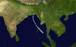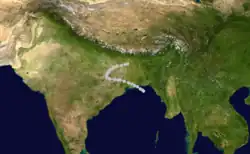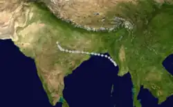 Produced torrential rain over northeastern India, with Cherrapunji recording 1,340 mm (53 in) of precipitation over a four-day span.[11]
