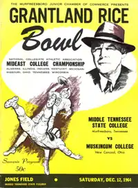 The 1964 Grantland Rice Bowl was an NCAA College Division game following the 1964 season, between the Muskingum Fighting Muskies and the Middle Tennessee Blue Raiders.[2] This was the inaugural playing of the bowl.