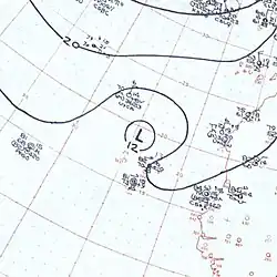 A strong tropical wave developed into a tropical depression in the northwestern Caribbean Sea on June 28.[12] The depression moved slowly northward and although it remained poorly defined throughout its duration,[5] the system intensified into a tropical storm early the following day.[12] Also despite being described as poorly defined, the wind field was well organized, especially in the northeastern quadrant. Around 14:00 UTC on June 29, the storm made landfall on Cuba's south coast just west of the modern-day border of Artemisa and Mayabeque provinces with winds of 40 mph (64 km/h). The cyclone emerged into the Straights of Florida several hours later. Early on June 30, the system peaked with sustained winds of 45 mph (72 km/h) and a minimum pressure of 1,004 mbar (29.6 inHg) while approaching the Florida Keys. Continuing northward, the storm passed just west of the Tampa Bay area on July 1 before striking Cedar Key at 22:00 UTC with winds of 45 mph (72 km/h). The system curved northeastward and weakened to a tropical depression over southern Georgia at 06:00 UTC on July 2, about 12 hours before dissipating.[12]