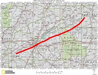 Official track of the Candlestick Park tornado through central Mississippi | |