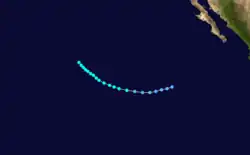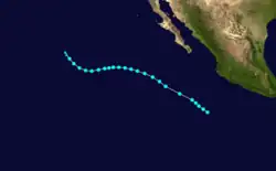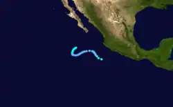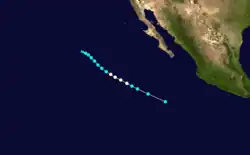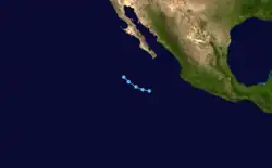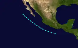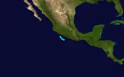 On June 16, a tropical storm was identified south of Mexico with winds of 45 mph (72 km/h).[3] It weakened as it approached the Mexican mainland and dissipated later that day.[3]