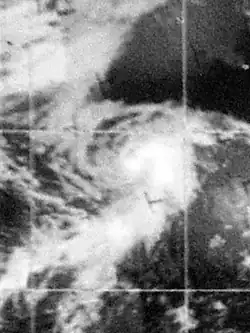 On July 6, a tropical depression formed south of Mexico. The depression had its origin in a loosely organized area of squalls which had first appeared on satellite photos late on July 5. It strengthened to a tropical storm on the 9th and was named Denise.[5] On July 15, Denise, now in the Central Pacific weakened into a tropical depression. The depression dissipated south-west of Hawaii on July 18, never threatening land.[6][7][8]