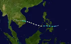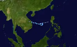 Freda formed east of the Philippines on November 6. It made landfall in the Philippines as a tropical storm. As it moved into the South China Sea, Freda developed into a Category 1 typhoon and made landfall in Vietnam. The storm dissipated inland on November 11.