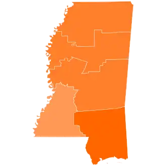 As of the 2024 presidential election, this is the last election in which the following counties did not vote for the Republican presidential candidate: Forrest, Lowndes, Lamar, Lauderdale, Lincoln, Newton, Rankin, Scott, Simpson, Harrison, Jackson, Choctaw, Jones, and Smith.[33]