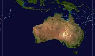 Cyclone Glynis formed on January 27 near the Northern Territory. It moved to the southwest before crossing the coast, near Mandurah, Western Australia. It was last noted on February 6. There were no damages and fatalities reported.[4]