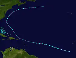- ^ a b c d e f g h i j k l m n o p q r s t u v w x y z aa ab ac ad ae af ag ah ai aj ak al am an ao ap aq ar as at au av aw ax ay az ba bb bc "Atlantic hurricane best track (HURDAT version 2)" (Database). United States National Hurricane Center. May 11, 2024.