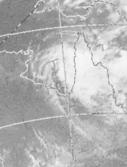 Tropical Cyclone Althea was a Category 4 cyclone when it hit the coast some 50 km north of Magnetic Island and Townsville in North Queensland on 24 December.[1] Althea produced peak gust wind speeds between 123 and 145 miles per hour (197 and 233 km/h). Three people died and property damage was estimated at A$115 million loss (1990 value). On Magnetic Island 90% of the houses were damaged or destroyed.[2] In Townsville houses were lifted from their foundations and most trees stripped of foliage. Althea was also notable at the time, as it had struck a major city.