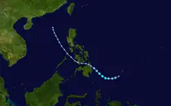 | Faye (Krising) | October 4 – 15 | Severe tropical storm | 985 hPa (29.09 inHg) | Philippines | Unknown | 13 | ||