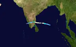 This storm killed 80 people and 150 cattle. 30,000 people were rendered homeless. Cuddalore recorded gust winds up to 150 km/h (95 mph) at the time of landfall. Total damages in Indian Rupees were estimated to be 40 crores.[4] The cyclone is visible on The Blue Marble (Top right) photo taken by Apollo 17.