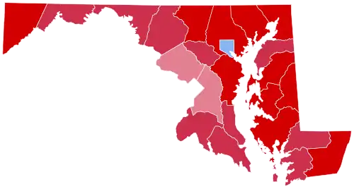 Maryland was won by incumbent President Richard Nixon of California and Vice President Spiro Agnew (a Maryland native), winning 61.26% of the vote to George McGovern and Shriver's 37.36%. Nixon won every county in the state, only losing independent Baltimore City. He won over 77% of the vote in Carroll County, and over 70% in another eight counties. As of the 2024 presidential election, this is the last time Prince George's County has voted Republican in a presidential election, the strongest performance by a Republican in Maryland, and the last time the Democratic candidate was held to under 60% of the vote in Baltimore City.[1][2] This was also the last of only 7 occasions[a] since the emergence of the Republican Party that Maryland has voted more Republican than the nation as a whole.[3]