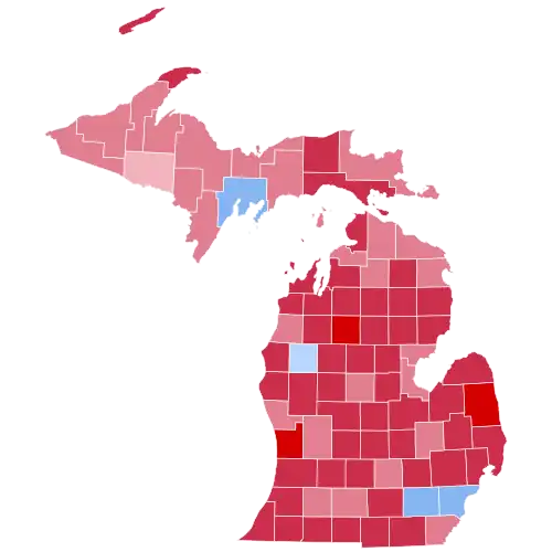 Delta, Lake, Washtenaw, and Wayne Counties were the only four of Michigan's 83 counties to vote for McGovern. Washtenaw was one of only six counties outside South Dakota (McGovern's home state) to vote for McGovern after voting for Richard Nixon in 1968. Nixon became the first Republican to win the White House without carrying Washtenaw since Benjamin Harrison in 1888. Gogebic County would not vote Republican again until 2016. As of the 2024 presidential election, this is the last time Wayne County was decided by a single-digit margin. It is also the last election in which Michigan voted to the left of New York.