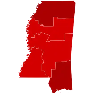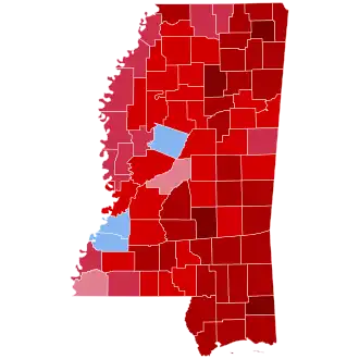 The 1972 United States presidential election in Mississippi was held on November 7, 1972. Incumbent President Nixon won the state of Mississippi with 78.20% of the vote.[1] This was the highest percentage Nixon received in any state in the election.[2] Nixon even received a higher share of the vote in Mississippi than McGovern did in the District of Columbia, making this one of only two elections where Washington, D.C. wasn't the largest margin for either candidate, along with 1964.