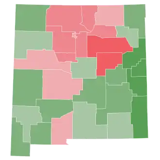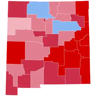 New Mexico was won by President Richard Nixon by a 24-point landslide, mirroring the national popular vote margin by a near-perfect amount and making New Mexico 1.3% more Republican than the nation-at-large. McGovern won only two counties: he comfortably won Rio Arriba County by 12.6 percentage points, and also won San Miguel County by 2.5 percentage points.[2] Nixon was the first Republican to carry Grant County since 1928.
