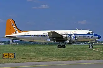 The aircraft was the 240th Douglas DC-4 off the production line. The machine was assembled in 1944 as the military version C-54B at the Douglas Aircraft Company factory in Santa Monica, California, and subsequently delivered to the United States Army Air Forces (USAAF). After World War II, the machine was categorized as surplus by the USAAF and decommissioned. The Douglas Aircraft Company purchased the machine on December 13, 1945, and converted it to a civilian DC-4. On April 2, 1946, the machine was sold to Delta Air Lines, where it operated until February 1953. After flying for several years with other airlines, in June 1959 it was sold to the Witwatersrand Native Labour Association (WNLA), a mining company managing gold mines in South Africa, also known as Wenela. The company was involved in recruiting migrant workers and owned a fleet of buses and aircraft stationed in all the countries of Southern Africa. The machine was registered firstly in South Africa, then in Rhodesia, and finally in Botswana as A2-ZER, to (Wenela Air Services Botswana). The four-engine long-range aircraft was equipped with four radial engines of the type Pratt & Whitney R-2000-2SD-13G Twin Wasp.