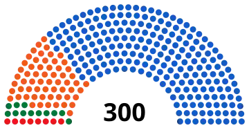 Last election 35.26%, 107 seats[a] 52.72%, 171 seats[b]