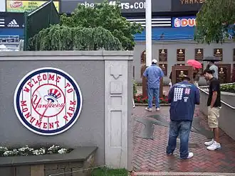 The Yankees opened "Monument Park" at the stadium in 1976. The origin of Monument Park is dated back to May 30, 1932, when the Yankees dedicated a monument to former manager Miller Huggins. The monument was placed it in front of the flagpole in center field at Yankee Stadium. Huggins was the first of many Yankees players granted this honor.
