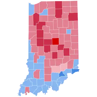 As of the 2020 presidential election, this is the last election in which Dearborn County, Dubois County, Martin County, Ohio County, and Owen County voted for a Democratic presidential candidate,[4] and the last in which St. Joseph County did not vote for the national popular vote winner until 2024. This also remains the last time that Indiana has voted for a different candidate than North Carolina in a presidential election.