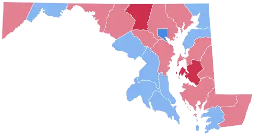 In this election, Maryland voted 4.01% more Democratic than the nation at-large.[3]