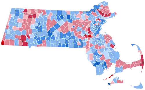 | Nantucket | 1,115 | 42.46% | 1,399 | 53.27% | 112 | 4.27% | -284 | -10.81% | 2,626 |