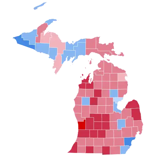 As of the 2024 presidential election, this is the final occasion of only four where Michigan and Pennsylvania voted for different presidential candidates ever since the Democrats and Republicans became the two major parties in U.S. politics.[2][a] This is also the last time that Michigan voted more Republican than Texas, Oklahoma, or Florida; and that the Democratic candidate lost Michigan but won neighboring Ohio.
