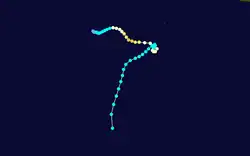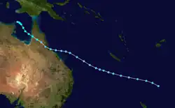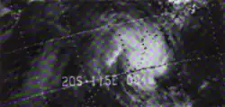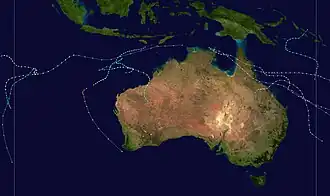 Cyclone Vern formed on 27 January from one of several low pressure centres within a trough that extended from the Cocos Islands eastward across northern Australia to Queensland. Over the period of a couple days, the strong northwesterly monsoonal flow to the north of the trough interacted with the strengthening easterly winds of a high-pressure area moving into the Great Australian Bight. As a result, one of the lows rapidly deepening into a tropical cyclone off the Kimberley coast. After initially moving tracking westward out to sea, the storm executed an anticyclonic loop and proceeded to move eastward. Then, early on 31 January, while located about 250 km (155 mi) northwest of Broome, Vern took a sharp turn toward the southeast then south. It continued in that general direction until it made landfall near Anna Plains at about 03:00 GMT, 1 February, with winds of about 145 km/h (90 mph). Inland, the system tracked southwestward then to the south again, causing flooding and minor damage, before dissipating on 3 February over the Pilbara.[1]