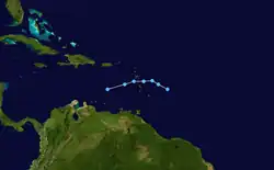 Tropical Depression Six formed on September 18 from a tropical wave.[8][21] The depression caused heavy rainfall in the Lesser Antilles,[21] before degenerating into an open tropical wave on September 20 near the Dominican Republic.[8][22]
