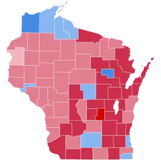 Reagan posted strong wins along the whole of eastern Wisconsin, apart from Manitowoc, Sheboygan, and Racine Counties, and the two Mondale wins in Milwaukee and Kenosha. He posted a particularly strong win in suburban Waukesha County, which he won by over thirty points. In western Wisconsin, Reagan won most of the counties but his margins tended to be weaker. As of the 2024 presidential election, this is the last election in which Eau Claire County, La Crosse County, Rock County, and Iowa County voted for a Republican presidential candidate, as well as the last election in which a Republican candidate won more than 40% of the vote in either Dane County or Milwaukee County, both of which have voted Democratic in increasingly large margins since. Adams, Buffalo, Crawford, Dunn, Jackson, Trempealeau, and Vernon counties would not vote Republican again until 2016, and Pierce County until 2012.[1]