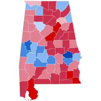 | Tuscaloosa | 27,396 | 59.87% | 18,166 | 39.70% | 118 | 0.26% | 46 | 0.10% | 32 | 0.07% | 9,230 | 20.17% | 45,758 |