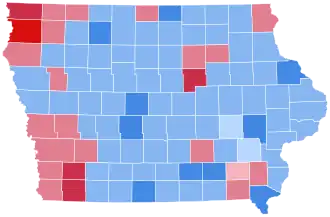 While Dukakis personally overperformed in Iowa due to the farm crisis, 1988 was also the beginning of a relatively long-term re-alignment of the state toward the Democratic Party, as the historically-Republican state became a Democratic-leaning swing state for a quarter of a century. Iowa had voted Republican in the five preceding elections, and nine of the previous eleven. From 1988 to 2012, Iowa voted Democratic in six of the seven elections that followed (out of the nine total elections overall), although starting in 2016, the state again became reliably Republican. Despite this, as of the 2024 presidential election, this is the last election in which Marion County, Buena Vista County, Sac County, and Humboldt County voted for a Democratic presidential candidate.[1]