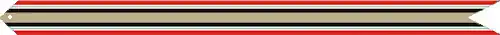 A gold color metal and enamel insignia 1+1⁄16 inches (2.7 cm) in height overall consisting of the shield and motto of the coat of arms.