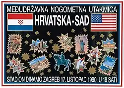 On 17 October 1990 Croatia hosted the United States in an unofficial international friendly in Zagreb's Maksimir stadium. Held on the eve of the nation's independence from Yugoslavia, this was Croatia's second international match in the modern era.[1]