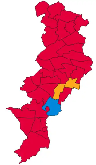 | Labour Party | 78,490 (58.6%) | 31 (91.2%) | 31 / 34