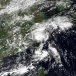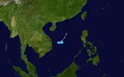 A tropical disturbance trekked across the Philippines in mid June, upon entering the South China Sea a depression formed. The depression was upgraded to Tropical Storm Nathan on June 16. Tropical Storm Nathan reached peak intensity of 65 mph (100 km/h) shortly before striking Hainan Island. In the South China Sea the Chinese ship Tien Fu sank killing 4 people. In southern China torrential rains caused flooding in Guangdong Province killing 10 people, two people drowned in Macau due to high waves. Tropical Storm Nathan then continued northwestwards making a final landfall near the Vietnam/China border.[3] The storm caused approximately 1.9 million RMB in damages (US$346,000).[5]