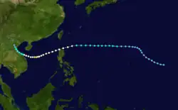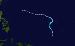 The 1990 Pacific typhoon season was another active season, with 31 storms being named during the year. It had no official bounds; it ran year-round in 1990, but most tropical cyclones formed in the northwestern Pacific Ocean between May and November.[1] These dates conventionally delimit the period of each year when most tropical cyclones form in the northwestern Pacific Ocean.