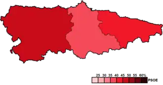 7. ^ a b c d "Elecciones a la Junta General del Principado de Asturias (1983 - 2019)". Historia Electoral.com (in Spanish). Retrieved 27 September 2017.
