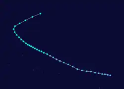 | Peak intensity | 110 km/h (70 mph) (10-min); 975 hPa (mbar) |