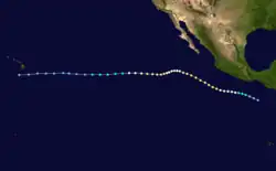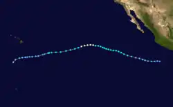 The 1992 Pacific hurricane season was the most active Pacific hurricane season on record, featuring 27 named storms. The season also produced the second-highest ACE value on record in the basin, only surpassed by the 2018 season. The 1992 season officially started on May 15 in the eastern Pacific, and on June 1 in the central Pacific, and lasted until November 30. These dates conventionally delimit the period of each year when most tropical cyclones form in the northeastern Pacific Ocean.[1] However, tropical cyclogenesis is possible at any time of the year, as demonstrated by the development of Hurricane Ekeka on January 28, and Tropical Storm Hali two months later.