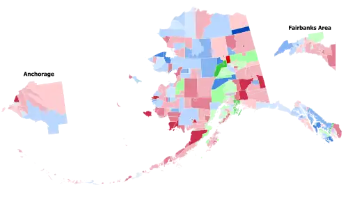 Boroughs and Census Areas that flipped from Republican to Democratic