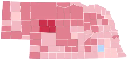 With 46.58% of the popular vote, Nebraska would give Bush his fourth-highest vote percentage in the nation after Mississippi, South Carolina and Alabama.[5] Perot came within 5.8% of Clinton's vote share in the state, and exceeded his share in 70 of Nebraska's 93 counties,[6] as well as in the state's heavily conservative 3rd congressional district.