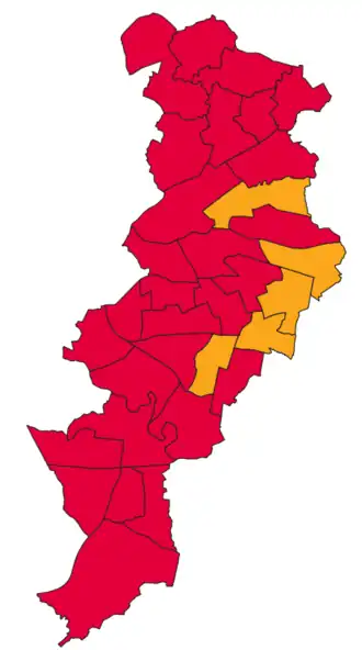 | Labour Party | 61,037 (59.2%) | 28 (82.3%) | 28 / 33