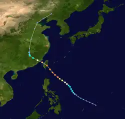 | Gladys (Uding) | August 20 – September 4 | Typhoon | 150 km/h (93 mph) | 955 hPa (28.20 inHg) | Taiwan, Ryukyu Islands, East China | $15.4 million | 6 | |