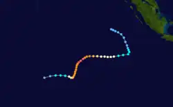| Peak intensity | 155 km/h (100 mph) (10-min); 955 hPa (mbar) |